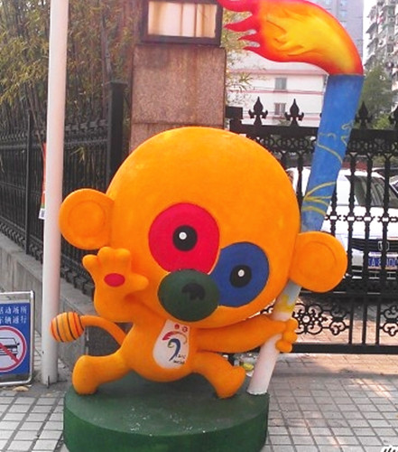 学校门口有亚青会吉祥物可爱的圆圆~~(上图)