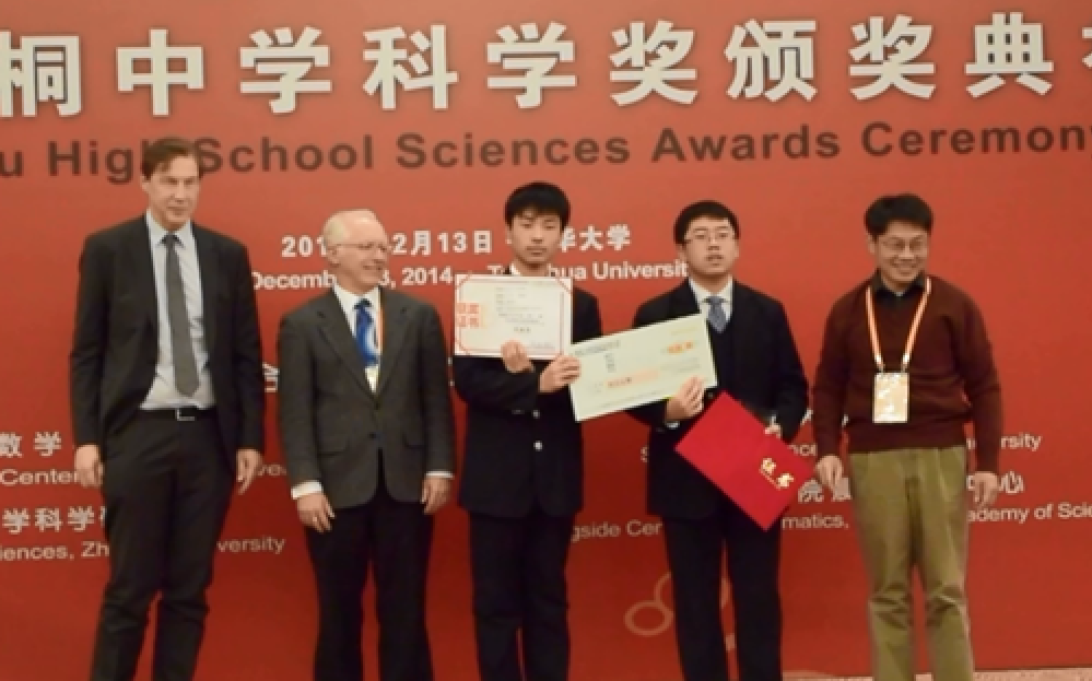 第二届丘成桐中学物理奖(S.T.Yau High School Physics Award)全球总决赛于2014年12月13日在北京清华大学落下帷幕。该项竞赛以学术创新为主题,以研究项目、撰写论文、论文答辩为形式,共有来自全球的418支队伍参加。经过论文初审、复评、复旦大学南部赛区决赛和清华大学全球总决赛共四轮角逐,在姚小琴、潘志民老师的指导下,Beat365唯一官方网站高三(1)班的曹刘、赵亦修和朱佳文同学的论文Hysteresis, mechanism for different looping modes and a different way of simulation in the case of a twisted rope在获得铜奖(决赛第4名)及6万元人民币奖金,高二(1)班赵亮和高二(5)张泽夏的论文A study of collisions between dominos获得优胜奖(决赛第9名)及3万元人民币奖金。可喜可贺!