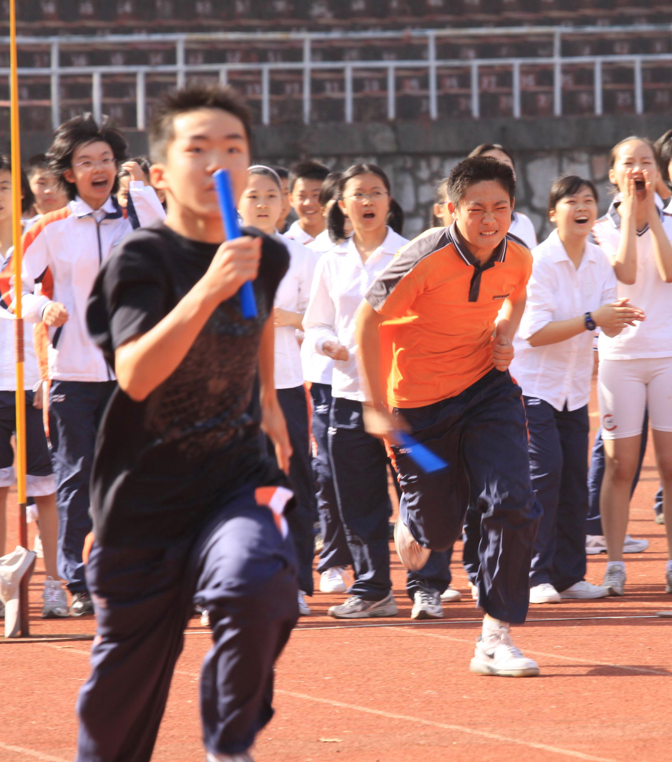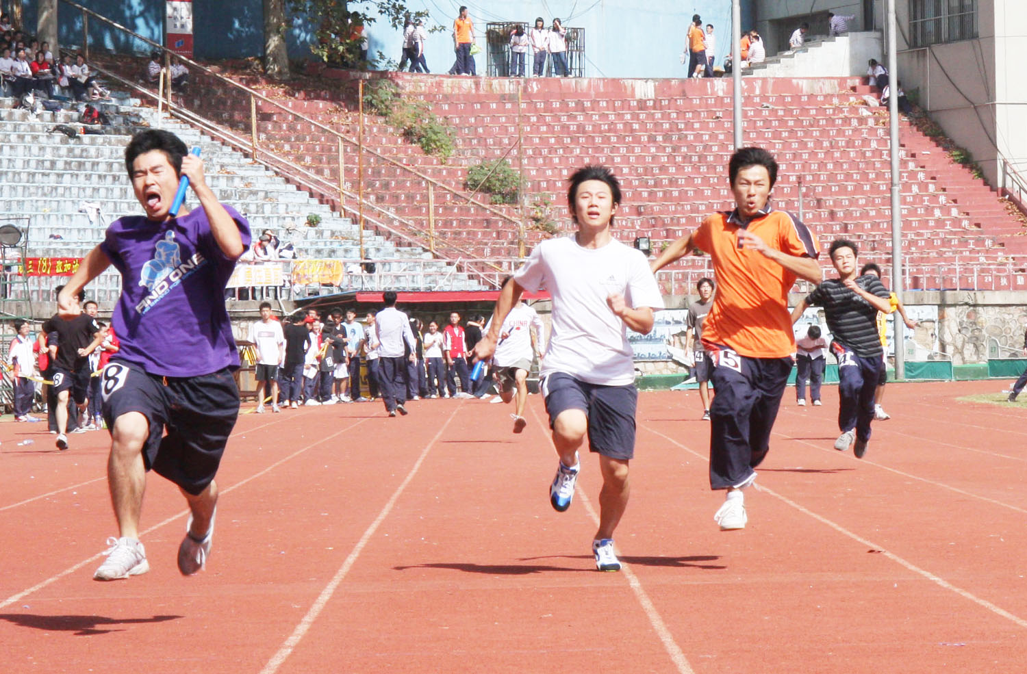 盛开的青春,浇不灭的火焰 初一(2)班 丁宛宁 秋天,那永远是蓝湛湛的天空。这时,只有北来的候鸟知道这张温暖的床,那飞翔的天鹅、鸿雁和野鸭,就像一片阴森的云朵,使这儿显得更苍郁了。 从体育节的前一个星期开始,每天我都会想想距离10月17日还有多少天。直到星期五下午,运动员们再次去训练的时候,才反应过来:"明天就是体育节啦!" 带着对此次运动会极大的期盼,周末,我早早地来到了五台山体育馆,找到看台上的位置后,放下挎包,又急忙跑到跑道上去集合。 在略显灼热的阳光下,我们精神抖擞、满面红光,顺利完成了入场式和健功拳表演。比赛随即开始。 一开始,同学们不太好意思为运动员大声呐喊,但听到高中的学长学姐们的吼声"冲破云霄",大家也纷纷开始挑战自己分贝的极限。 比赛如火如荼地进行着, 在一阵阵加油声与呐喊声中,我班的同学取得了不错的成绩。其中,肖源明同学值得嘉奖--他竟获得"双银",而蒋若沁同学也很成功--她在女子200米的短跑比赛中获得银牌,钱诚同学在男子1000米长跑比赛中也拿到名次,值得鼓励! 虽然体育节已经过去,但是我们仍然要坚持每天在课余时间里多多锻炼。 俗话说:身体是革命的本钱。健康的身体能使我们在追求成功的路途上事半功倍。作为拥有中国灵魂、世界胸怀的南外人,拥有一个阳光、健康的精神面貌,锻炼身体更是至关重要的必修课。运动不但能增强身体抵抗力,更能磨砺我们的意志,促进我们思维的灵活。运动,就是为人生征途铸造一把利刃。 恰有如:微风沁心脾,不知在秋!艳阳当空,心底振奋身体懒;两耳倾听,尽是凯旋意。如此人生,慵懒不可,必到赛场,赛出激情! 赛青春 初一(5)班 王雅心 今日乃一年一度的校运会。从健儿们到老师,再到像鄙人这样为数甚多的观者,无不欢呼雀跃,热情高涨,奔跑于青春的赛道之上。 青春阳气生发,万物萌生也。因人而论,它恰似一江春水,奔涌着,在寻求人生真理的过程中不断进取。 青春在健儿们身上展现得淋漓尽致。吾班一英雄轻而易举地摘得了某项目金牌,最令人难忘的属此人头上的青绿色头巾,据她本人所说:"若跑于赛道中,此招大可减少阻力。"这种认真的态度与丰富的想象力是赛青春者应备的,青春正如阳光下深深浅浅的绿,仿佛朝着太阳高歌,那是生命与青春的交织,活泼而有生机。 青春在老师身上流光溢彩,这种青春可贵而又美丽。当老师在赛道边一次次呐喊"加油",一次次拿着相机紧随着队伍奔跑……他们仿佛逆转了时间的齿轮,回到了那纯真的豆蔻年代、青春年华。久违的激情一触即发。 青春在观者身上迸发出火花。虽未加入运动健儿的行列,但我们愿付出、我们愿努力;虽然喊声比不上锣鼓喧天,但我们气势逼人,我们激情昂扬……当有人摔跤,不禁会担心起来;当朋友夺冠,又忍不住欢呼,这是我,也是任何赛青春者的内心。在青春的赛道上我们蓄势待发,我们敢为人先! 健儿赛道论英雄,你我勿忘赛青春。 凌飞 初一(11)班 汪欣荣 她最终还是站在了起跑线上。 尽管她带着无比忐忑的心情、忧虑的眼神;尽管她原本红扑扑的脸变得苍白;尽管她的手冰凉如雪;尽管她本是想站在200米跑道起跑线上,但现在却站在800米跑的起跑线上;尽管她害怕不能为班级争光…… 开始跑了!谁都能发现她一跑起来就发狂了,忘情了,没命了! 她大步迈着修长的双腿,双手紧握来回摆动,秀美的长发在风中尽情飘逸着,像一丝丝细雨般柔滑,却又透着那股倔强的韧劲,飞舞着,流动着,是飞瀑,是江河,是她无限的动力!她的瞳孔闪烁着,跳跃着,爆发出耀眼的光芒,宛如一只展翅高飞的海鸥,在空中驰骋、翱翔。她现在是第五名,她咬着牙坚守着,不让自己再落后,也不让别人再超过。啊,真可惜!疲惫使她慢慢地放慢了速度,成了倒数第二名。只剩80米了,倒数第一的同学与她相差只有一丁点,可是为了那一丁点,为了自己,更为了班级,她使劲忍住喉咙里那股难闻到令人作呕的腥味,双腿拖着精疲力竭的身体跑着,跑着,一直跑着。”离前方不远了,快到了,那就是终点!"她努力告诉自己,想让自己为了前方的目标而坚持着。可体力的不支,巨大的压力,使她喘不过气来,呼吸越来越困难。她似乎像一个松脆的玻璃,一碰就要碎了。 "跑啊,加油!"连我们班刚才一直没关注赛程的同学都不由自主地站了起来,他们歇斯底里地大吼,喊得响亮,喊得真诚。,即使她的耳朵因为被风刮得生疼而听不见,那么她的心也一定听见了。 只是,在最后关头,她还是成了最后一名。可是,这又有什么关系呢?对于每一个参与者而言,无论成败,只要尽力了,那就足够了。这是一种锻炼,能使他们收获并成长。 我看见她的泪水悄然地滑落,可是,我也看见了她的微笑,是那样的真,是那样的美,是那样的执着……这也正如她的名字———凌飞。 夺冠 初一(7)班 王觉晓 初中生活中的第一个体育节来临了,这对我来说有点小亢奋。体育活动是我的强项,小学运动会上我可拿过不少次冠军。 在团体展示完武术操后我便走进了跳绳赛场。赛场在偌大的五台山体育场的角落里,身边没有了同学们的呐喊声,自己莫名地紧张起来,好在同班的几位队友还能够互相鼓励。 轮到我上场了,我赶紧调整好自己的呼吸进入比赛状态。"嘟!"一声哨响后,我双手快速摇动棉绳,双脚随着上身的节奏跳动。哪知由于之前没有拿这种比赛用的棉绳练习过,手感不是太好,我暗
