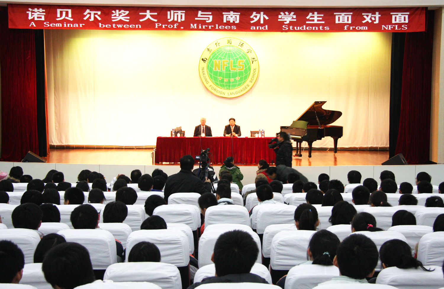 通讯员 高二2班 韩雨禾 11月16日下午,1996年诺贝尔经济学奖获得者----詹姆斯·莫里斯,来到了南外的报告厅,与高二师生面对面。 董校长亲临现场全程陪同,开场简短的介绍让同学们初识了这位经济学大师。随后是提问环节,从国外大学对学生的能力要求到中国房地产市场火爆现象剖析,从诺贝尔等国际学术大奖的成功之路到Prof.Mirrless的爱好、爱读的小说,从奥巴马新政的看法到大师自己对钢琴的执着,同学们在较短的时间内把座谈会一步步推向高潮。直到最后一个同学提出让大师秀一把钢琴技巧的邀请,这位在经济学领域叱诧风云的人物也露出了害羞紧张的表情,连连摆手,不停道歉,声称自己不记得琴谱也缺乏准备,只好作罢。董校长提出让现场同学代替Mr. Mirrless演奏一曲,僵持很久之后,文艺部长英勇地走上台,小露了一手。Mr. Mirrless给予了衷心的掌声,此次座谈会非常愉快地在钢琴声中结束了。 Prof. Mirrless小档案: 詹姆斯·莫里斯,典型的苏格兰人,亚当·斯密的同乡。莫里斯从小就显露出了对数学的浓厚兴趣和超乎寻常的天分。1957年,莫里斯以第一名的骄人成绩从爱丁堡大学数学系毕业,顺利进入剑桥大学,拿下了博士学位。后来近30年的时间里,莫里斯一直执教于牛津,现在是剑桥大学和香港中文大学的经济学教授。除了担任过国际计量经济学会会长、英国皇家经济学会会长、中国政府经济顾问等职,1997年,莫里斯教授还被英国女王授予了“爵士”爵位。 1996年,莫里斯由于在信息经济学理论领域做出了重大贡献,尤其是不对称信息条件下的经济激励理论的论述,获得了诺贝尔经济学奖,这一理论已经成为现代经济学的重要基石。 |