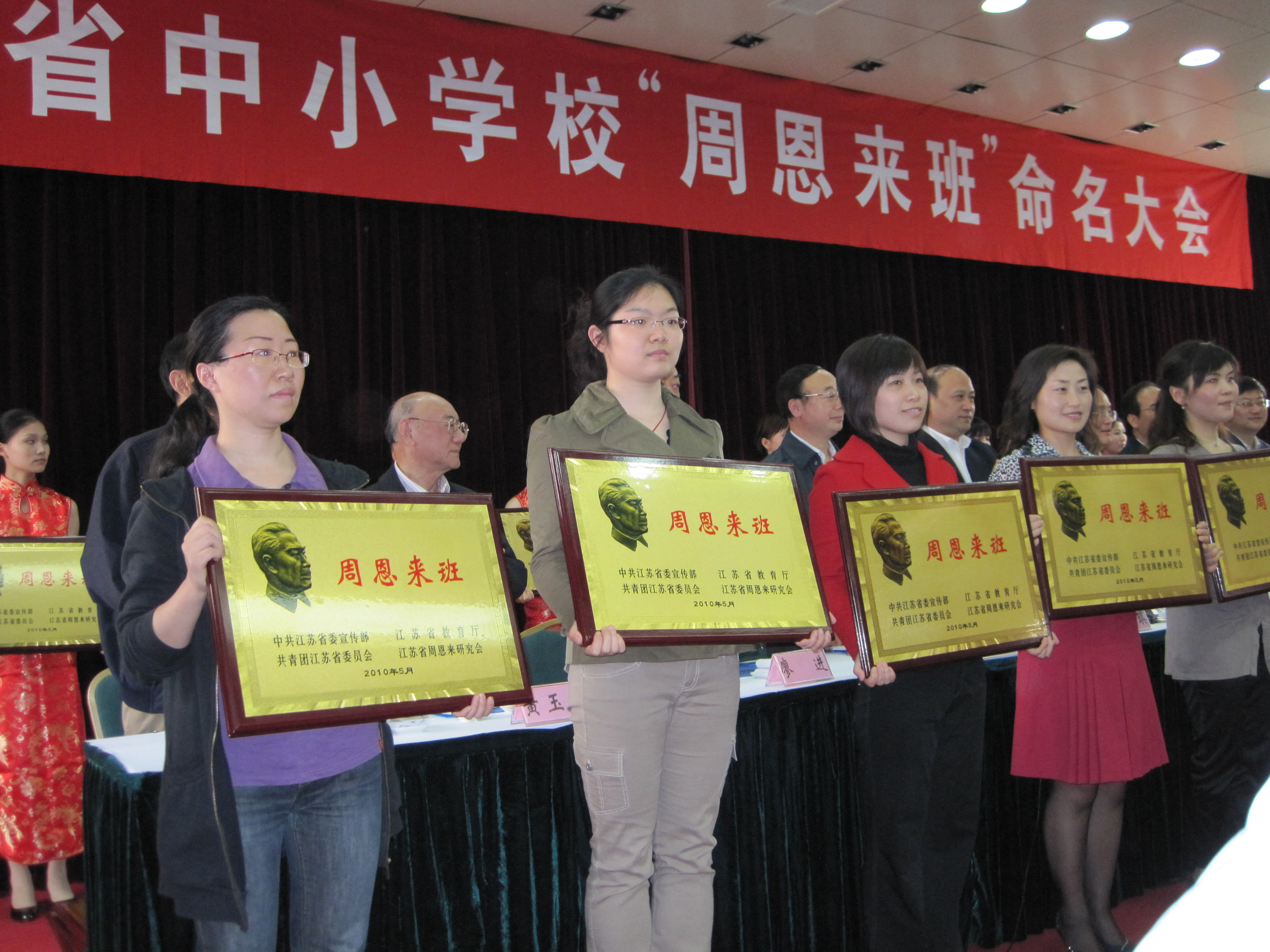 5月15日下午,学生处吕燕老师和初二(9)班班主任杜菁老师一起参加了2009-2010年度“江苏省中小学校‘周恩来班’命名大会。 经省委宣传部、省教育厅、团省委、省周恩来研究会联合研究决定命名Beat365唯一官方网站初二(9)班等60个班级为江苏省中小学“周恩来班”。大会上为每个班级颁发命名证书、铜牌,给每人学生赠发图书和“江苏省周恩来班”纪念徽章,接着四个单位的代表做了大会发言,交流经验。省委教育工委副书记丛懋林同志最后做了总结,号召大家紧密配合学校德育,以周恩来同志为光辉典范,广泛、深入、持久开展创建活动,为发展教育事业,培养“四有”新人作出新的更大贡献。 |
