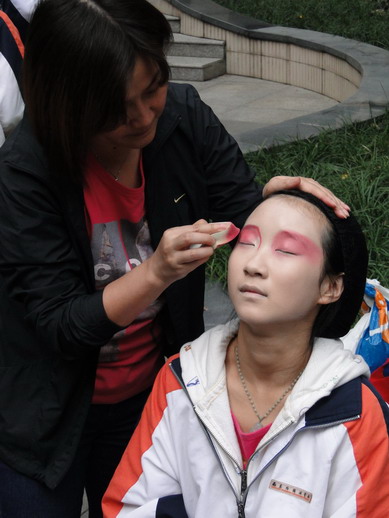 在13日中午仅有的40分钟招新时间里。各个社团的招新人员都卯足了劲摇旗呐喊,招纳社员。社团之间的竞争也显得越发激烈。由于今年参加招新的社团大大超过往期,各个社团招新点的面积也相应减少了许多,但面积的减少并没有影响社团丰富的招新计划。音乐社为了增大场地的面积巧妙地利用了电梯间入口的台阶,席地而坐,用歌曲联唱的方式招募社员的加盟。国风社的成员则充分地运用了纵向的空间,把社团的特色发挥地淋漓尽致。