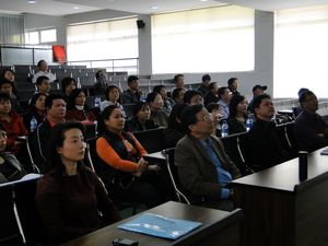 接待来访人员。在E2楼阶梯教室,校领导徐飞书记向来访者详细介绍了365官网的德育工作情况,包括培养目标、培养模式以及具体活动等等。来访者报以热烈的掌声,报告结束后,纷纷表示深受启发,并索取相关材料表示此次南外之行获益匪浅。