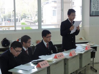 (3)班辩题是是“建设和谐社会,完善社会制度更重要”和“建设和谐社会,调高人民素质更重要。双方展开激烈的辩论,其中第三个环节——自由辩论阶段尤为精彩。双方唇枪舌剑,辩论场上硝烟四起。经过最后一轮针锋相对的总结陈词,本场辩论告一段落。评委老师宣布获胜班级——8班,并允以精妙的点评。