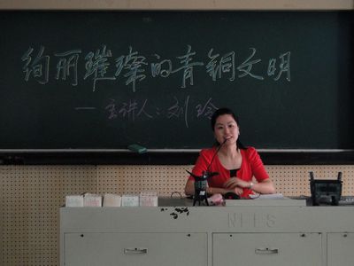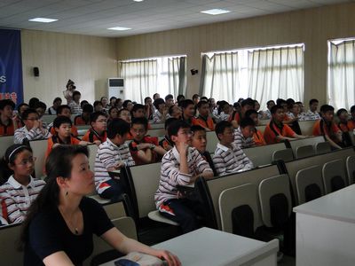 5月16日下午,在阶梯教室举行了一场别开生面的关于青铜知识讲座,来自南京博物院的老师们特意将青铜器的仿制品摆放在了教室的讲台上,初一的同学到达会场后,看到这些青铜器