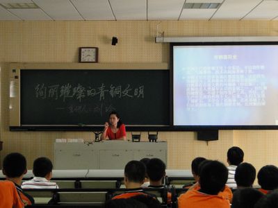 在历史课本中,同学们只是大概了解了关于青铜的知识,当老师问道:“青铜器的鼎盛时期是什么时候?”同学们便畅所欲言,老师并没有急于说出答案,而是让同学们在这样的“争论”中,以达到“研