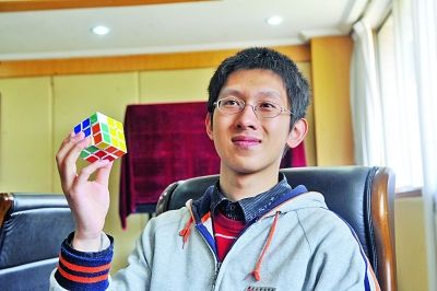 南外2012届高三录取美国哈佛大学的 刘天宇 同学在学习之余摆弄魔方时“能充分感受数学公式展开之美。”
