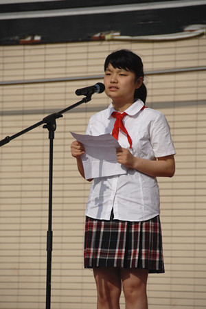于跃:我是初二三班的于跃,很高兴在这个阳光明媚的早