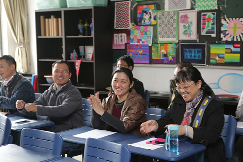 曹启海老师与吴蓉老师分别开设了艺术课与心理课,前来交流的老师们分组观摩,课后做了经验分享交流。