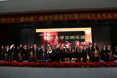 音乐会结束,邹正校长给全场同学做了精彩讲话,鼓励大家努力向南京大学的哥哥姐姐学习,既要做学术上的学霸,又可以成为有艺术专长的人,并朝着有“中国灵魂世界胸怀”的南外人目标前进!
