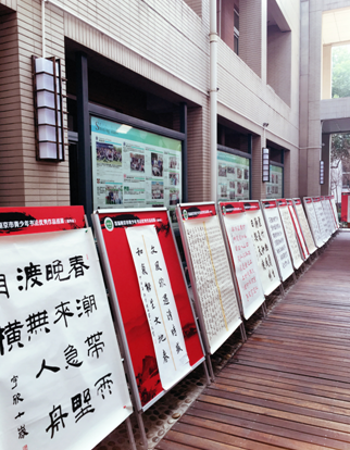 南京市青少年书法优秀作品巡展在校天井处,365官网学生优秀书法作品巡展位于校中国韵、世界风展厅,欢迎全校师生前去观赏。