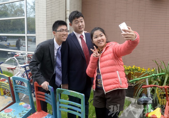 缘分就是这么妙不可言!高一时Beat365唯一官方网站女生苗芃芃和男生谢春阳、沈亦飞,一起被选中到美国圣路易斯大学附属高中交流半年,结下深厚友情;去年底,苗芃芃被留学生们心中的“圣殿”——“哈耶普”之一的耶鲁大学提前录取,令人惊喜的是,谢春阳、沈亦飞双双在刚刚过去的4月1日愚人节,也被耶鲁大学录取了。当然这不是玩笑,而是实力让三个小伙伴又将在美国重聚!现代快报去年已经分享过苗芃芃的故事【详见现代快报2015年12月24日都1版《南外学霸“七仙女”被世界名校相中》】,那两位男生的成功密码究竟是什么?