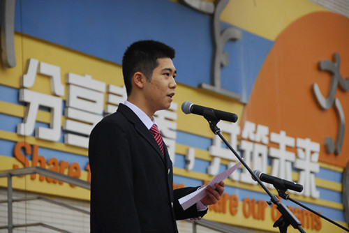 衡砺寒:老师们、同学们,大家好!我是校团委委员、来自高二八班的衡砺寒。