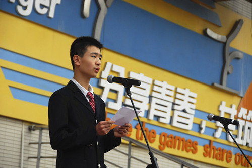 钱月涵:下面有请高一(2)班的程昊然同学谈谈他的看法。