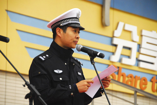 一个和谐的社会,首先是一个文明的社会,而交通文明是体现社会文明的重要方面。文明交通离不开文明市民,自觉遵守交通安全法规,摒弃交通陋习是每位市民应尽的职责和义务。今天在场的南外学子,更是我们青少年中的优秀代表,我们南外学子应该在市民面前树立先进的榜样,在全社会倡导文明交通新风。当前随着道路交通的发展,经济水平的逐步提高,各种车辆也呈现爆发式增长,随之而来的是交通事故日益高发。据我们交警一大队统计,平均每天玄武区发生各种交通事故两百到三百起,死亡事故也是时有发生。交通事故其实离我们并不遥远,据不完全统计在中国每六秒就有一人死于交通事故,每年超过20万人因此丧生,因交通事故死亡的人数高居非正常死亡人数之首。