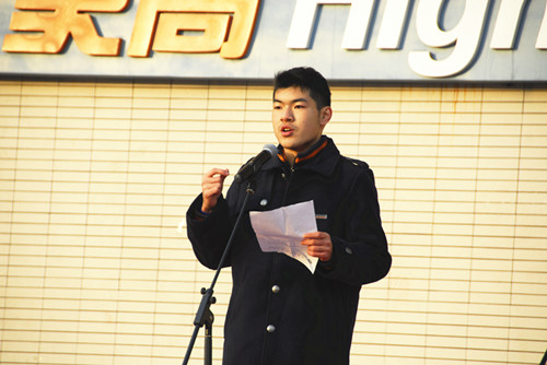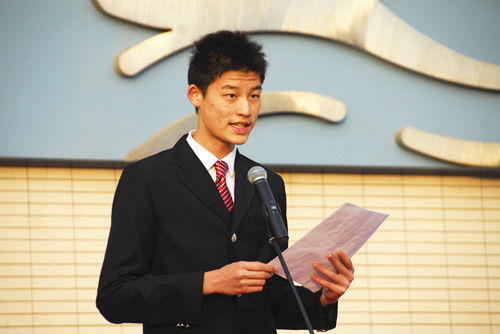 初中的学弟学妹们,我知道你们对高中生活和社团活动都很向往,这一点从我们许多的社团初中预备社员和每天高中学长做操时你们热情的掌声就能体现。对我而言,自从初中以来,我就有将所有有电影制作爱好的同学集中起来的愿望。好不容易熬过了中考,开始了展望已久的高中生活,我立刻成立了电影制作社。虽然现在你们离社团活动还有些距离,但是一旦进入高中,你就能感受到社团的魅力。所以现在就请做好准备,在将精力放在学习上的同时,也努力追逐梦想吧,进入高中,来到社团的大家庭,你,就能主宰。