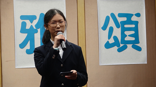 本次活动还体现出了极大的多样性。选手们来自初中高中的各个年级,初一的小主持人们灵动活泼的表现令人惊艳,初二的选手们落落大方绝不输人,而高一的学长学姐们也都纷纷各显绝活。诗歌朗诵的选材选择也十分广泛,有中国诗也有外国诗,有现代诗也有古体诗,有清秀娟丽的也有壮志凌云的,充分地考验了选手们对不同情感与表达的处理。最后的模拟主持环节中,选手们更是八仙过海各显神通,在台下的五分钟内绞尽脑汁寻求最富感染力和创造力又紧扣主题的表现形式,又在台上短短的三十秒内使尽浑身解数力求呈现出最精彩的表演。