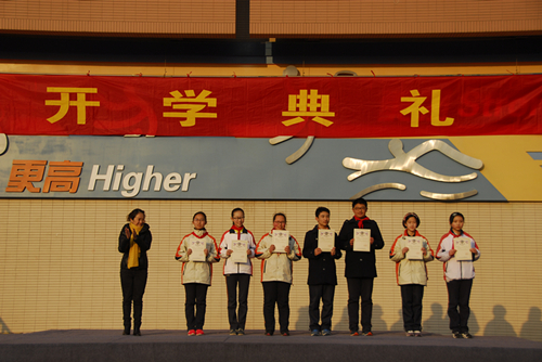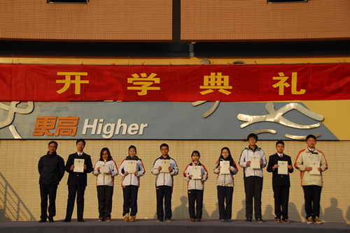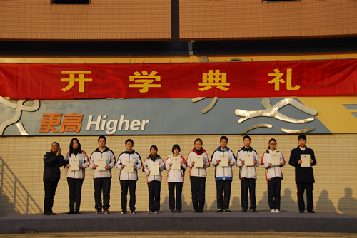 朱校长为高中劳动十佳颁发证书