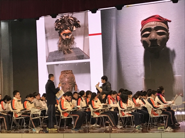 蒋老师又针对剧本中反复出现的“传男不传女”的现象让学生探究戏剧背后蕴含的“重男轻女”的落后观念,体会戏剧中的冲突根源。学生在蒋老师的带动下积极思考、发言踊跃,特别在“分角色朗读”环节中,更将课堂推向了高潮。