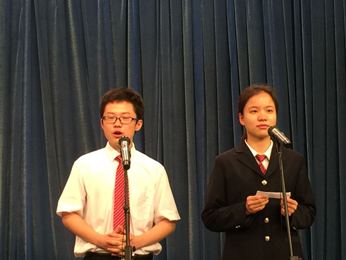 欧:大家好,我是高一(3)班的欧阳甘霖。