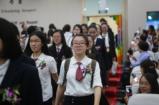 毕业典礼有三个精彩的主题发言:邹正校长回顾了2017届学生取得的辉煌成绩,代表学校向毕业生提出了“立大志,致良知”的希望;王宏琪先生代表家长表达了对学校的感激以及对孩子们的谆谆嘱托;被哈佛大学录取的李瑞怡同学代表学生,感谢南外给他们烙下独特的精神印记,对母校表达了真挚的祝福。