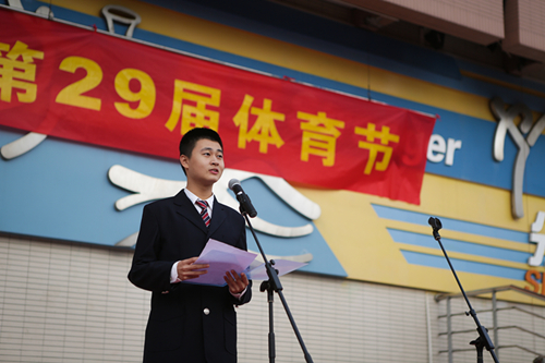 杨:所以,让我们在体育节中尽力拼搏,奋勇争先,挥洒青春,追逐梦想。