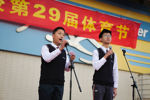 徐:在这个金风送爽的时节,南外人迎来了我们的体育盛会。本届体育节的主题是:强体魄以振中华。
