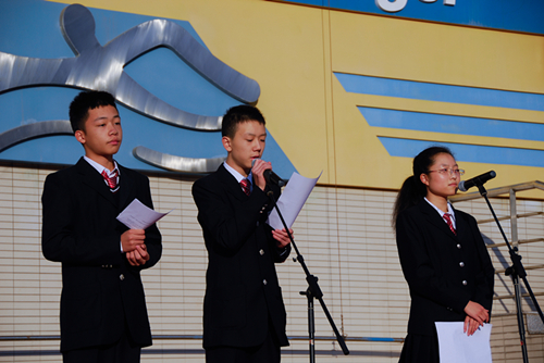 Arthur:老师们,同学们,大家好!我叫安河,来自法国,我的法文名叫Arthur, 在法国,我有两个弟弟和一个妹妹,我将在中国学习一年,我相信这将是一次令人难忘的经历。我喜欢语言学习,也对科学很感兴趣。我喜欢体育,也热爱音乐,会弹贝斯,也搞乐队,会玩水球,也会英式拳击。我希望我能在中国,这个充满文化气息的国家,学到更多不同的东西,接触更多对我来说新鲜的事物,结识更多新的同学们,很高兴能够认识你们!