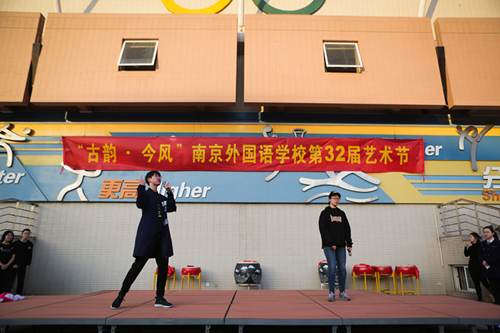 朴:感谢钱奕歆同学的精彩介绍。今天,中加国际的同学们精心准备了一个节目,融合戏曲、街舞、嘻哈于一体,诠释着本次艺术节的主题。大家掌声有请。