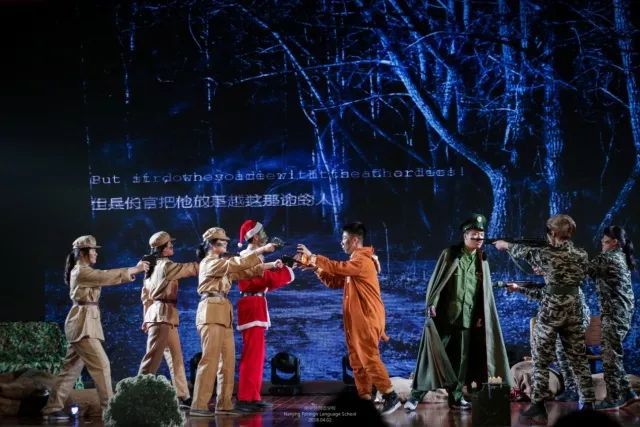 高二(7)班的同学将战争和圣诞老人放上同一舞台,演绎出一段爱与人性的故事《圣诞快乐》;