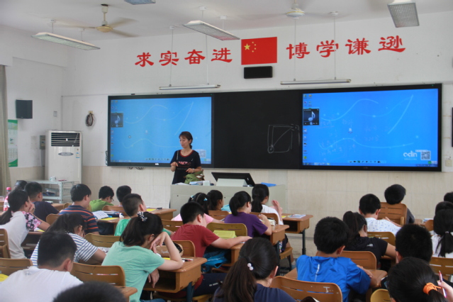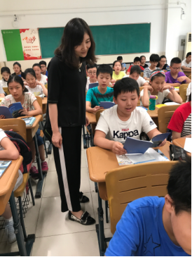 在音乐老师的带领下学习校歌《世界情怀》