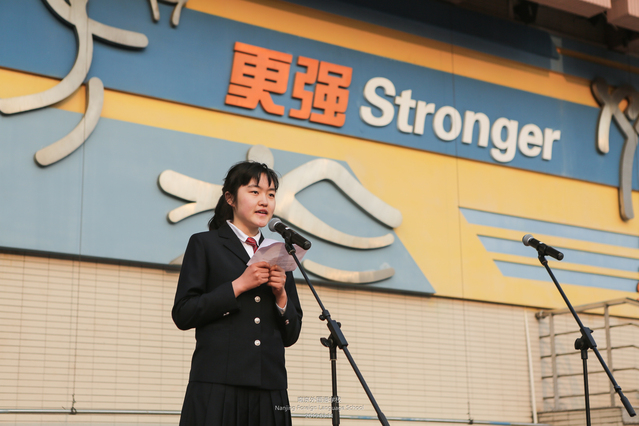 陆:老师们,同学们,大家早上好!我是来自高三(7)班的陆静文。