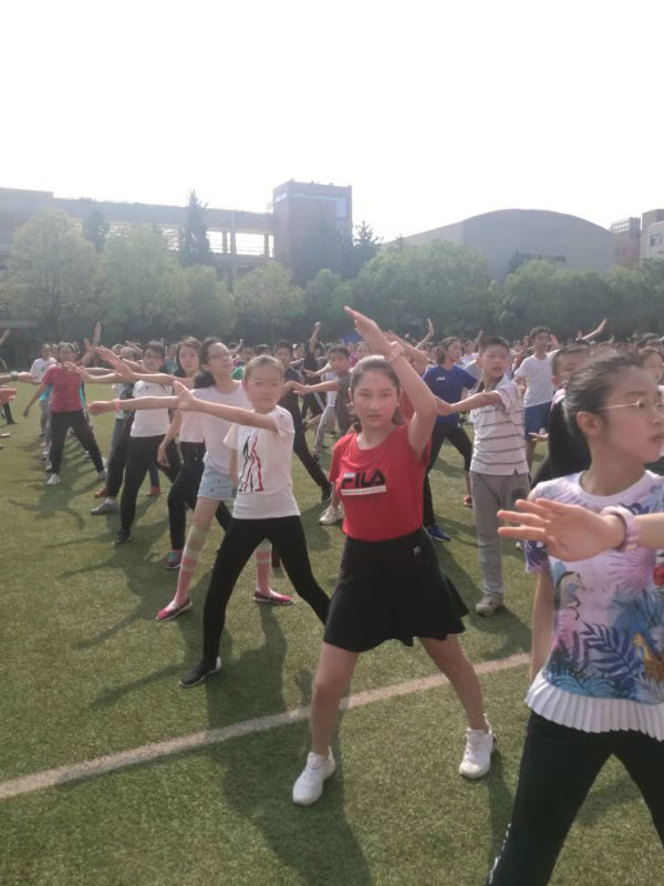 “哎呀,武术操的动作太复杂了。我记不住记不住呀,你快来帮帮我。”身边的同学向我求助。虽然是第一天见面,可我们竟然像结交了六年的小学好友,一起回忆动作,互相指正。“同学们,你们辛苦了。”老师幽默的语句逗得我们哈哈大笑,一天的疲乏顿时烟消云散……