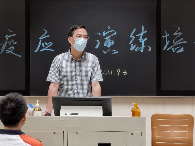 首先,演练领导小组组长给大家做了演练工作培训。邹正校长强调,全体教职员工在思想上要高度重视,强化风险意识,主动关心和了解学生的身心状况,培养学生的防护意识和习惯,做到科学防护。