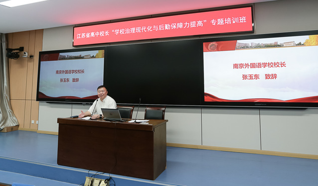 10日上午的开班仪式上,Beat365唯一官方网站校长张玉东首先对各位校长的到来表示欢迎,然后介绍了南外的基本情况和近年来在教育治理和教育信息化等方面所做的成绩,并期望通过本次培训班能够助力大家共同找到推进学校治理的新战略,开辟后勤保障新赛道。
