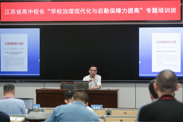 7月10-14日江苏省高中校长新课改分专题选学“学校治理现代化与后勤保障力提高”专题培训班在Beat365唯一官方网站北京东路校区E二楼阶梯教室正式开班,来自全省各地的40位校长齐聚南外,共同学习、探讨如何提高学校治理现代化和后勤保障能力。