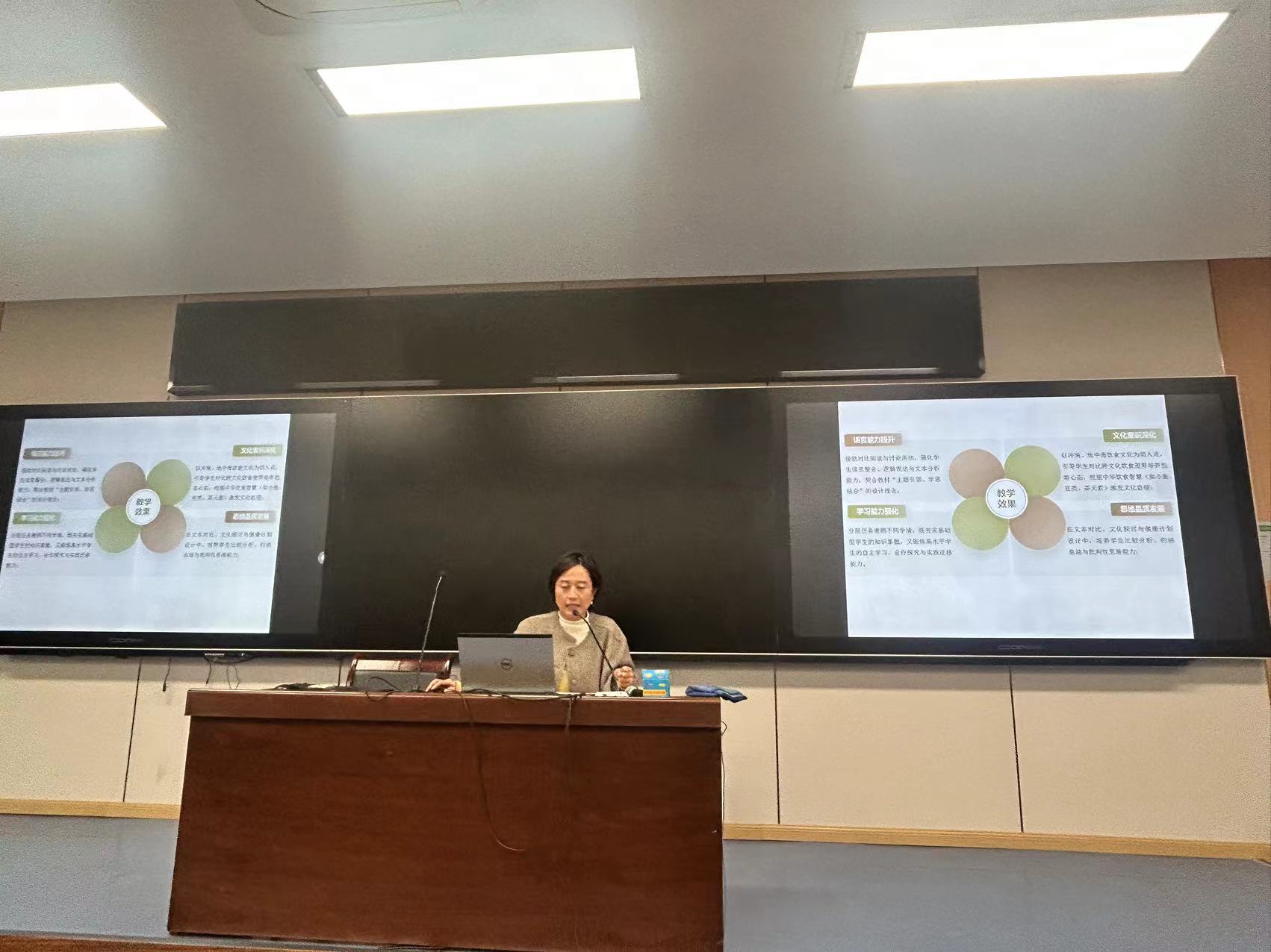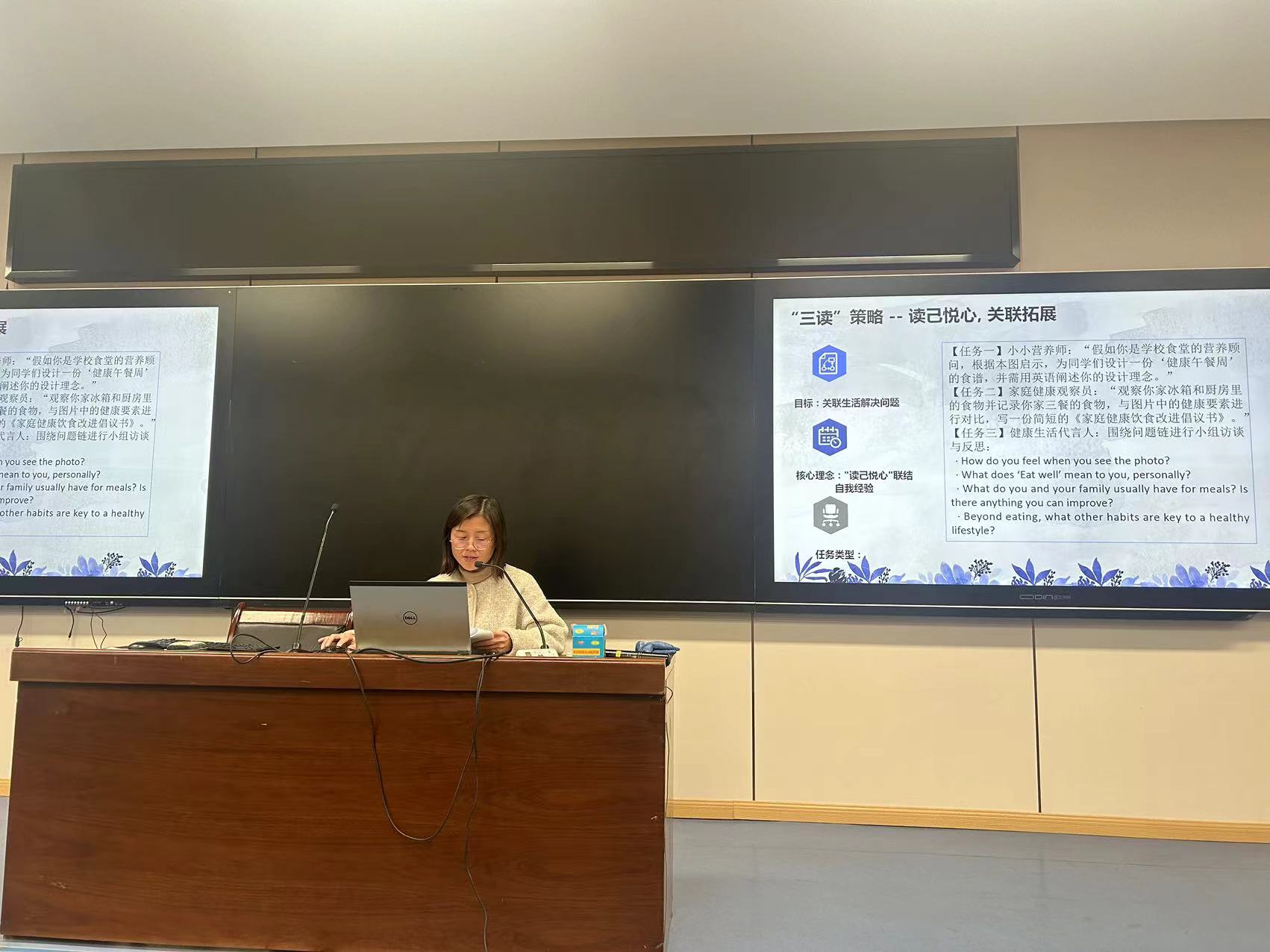 两节课后是讲座环节。丁蕾老师围绕“挖掘图片潜能,赋能英语教学”的话题,分享了“三读”教材图片的实践路径——“初读” 搭建视觉支架,激活学生感知;“再读” 聚焦图文互证与批判性思考,引导学生深层意义解读;“三读” 则关联真实生活,通过迁移创新任务实现知识内化与素养提升。