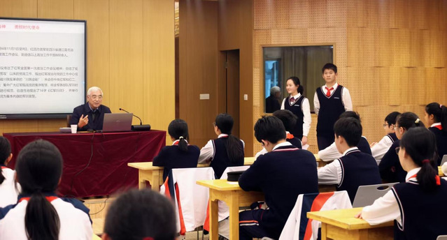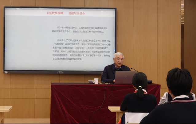 老师始终怀揣传承的初心,他精心录制视频,让父辈的故事不被时光尘封。在分享尾声,他寄语南外学子:传承“智勇坚定、排难创新、团结奋斗、不胜不休”的红军精神,恪守“秉承守善、尽责担当、博文积识、笃行致远”的信念,将个人成长融入国家发展的洪流。