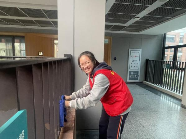 作为任务覆盖范围最广的班级之一,高一(10)班负责了千人剧场、图书馆等多个区域。他们在图书馆体验了知识殿堂管理的细致,在剧场营造了整洁舒适的观演环境,在教学楼则进行了全面深度的清洁。他们将此次活动定义为一堂生动而深刻的“大思政课”,收获了劳动观念、实践能力、团队协作和校园归属感的全面提升。
