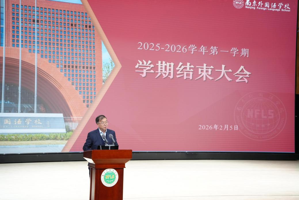 校党委书记刘前树作总结讲话。他指出,2025年是学校的“奋进行动年”。这一年,全体南外人以“中国灵魂、世界胸怀”为舵,以“全面发展、自由成长”为帆,在立德树人的航道上勇毅前行。学科竞赛全面开花,STEM创新跨界融合,国际交流织就广阔网络,双高协作叩响未来之门。每一则喜讯背后,都是师生共赴山海的身影,都是汗水与智慧交织的诗篇。