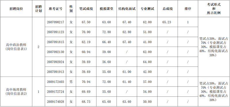 Beat365唯一官方网站2026年1月公开招聘教师面试成绩公布