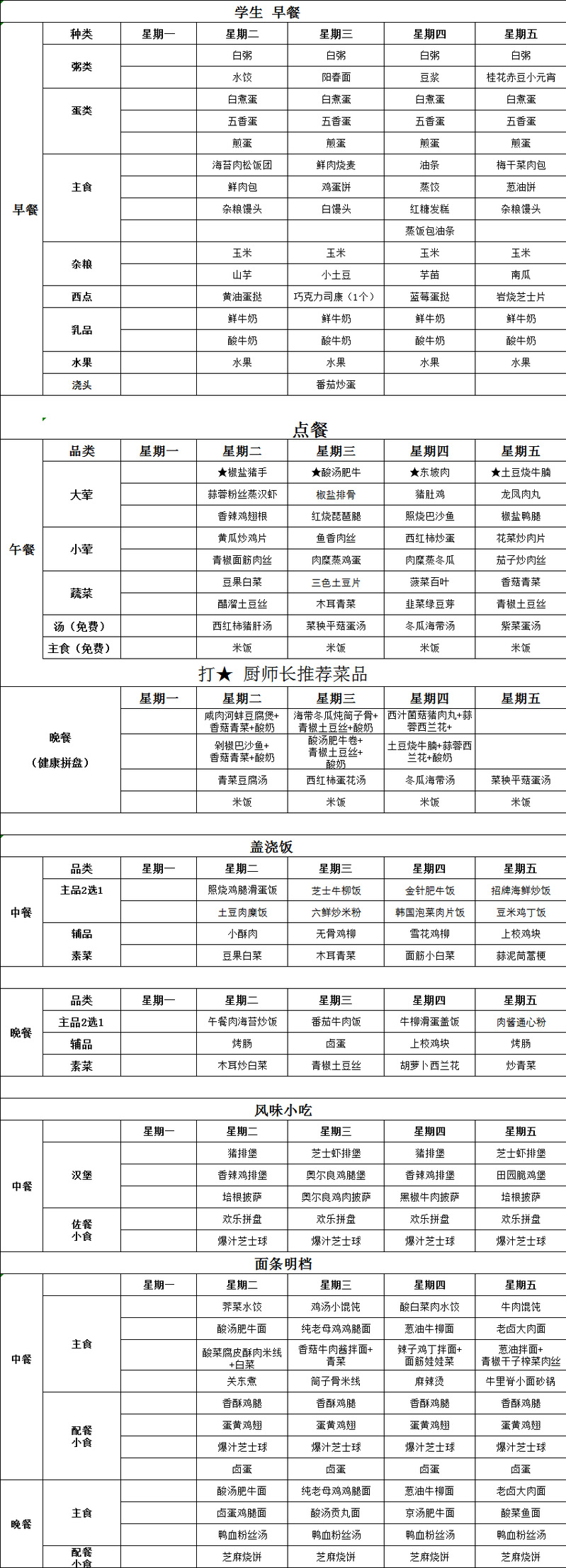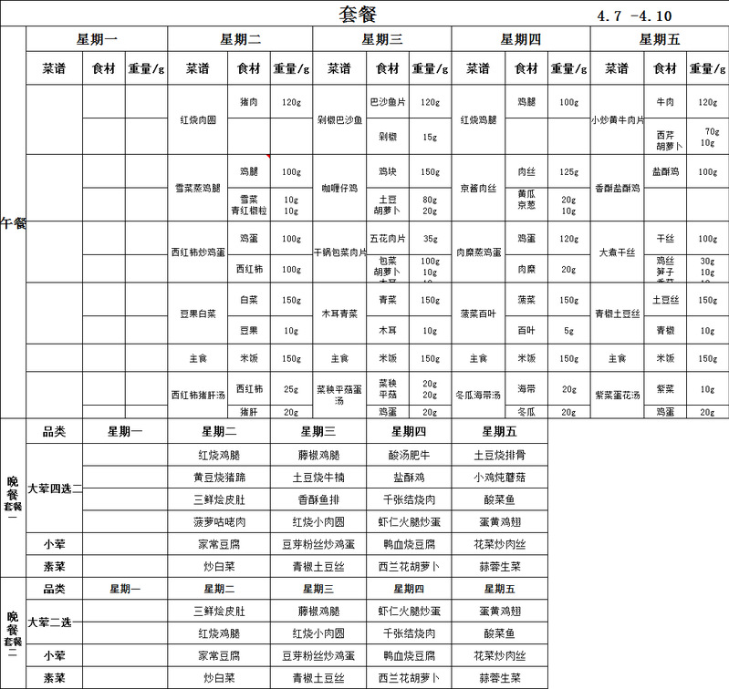 南校区2026年4月7日-4月10日菜单