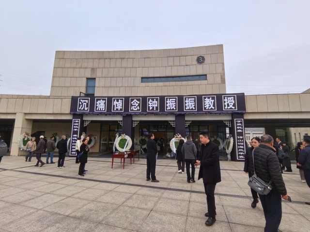 “素挽”指白色挽幛与花圈,“如云”形容追悼会现场的花圈之多,“遮广殿”写灵堂庄严肃穆,花圈挽联满布。“霜朋”比喻满头白发的友人,“扶杖”指南外的老校友们相互扶持的场景(在追悼会到场的校友中我的年龄虽然最小,也已经70多岁了),“揖清流”既写参加追悼会的友人们向钟振振遗像或灵柩躬身行礼的姿态,又以“清流”来赞学长品行高洁,如清流不染。